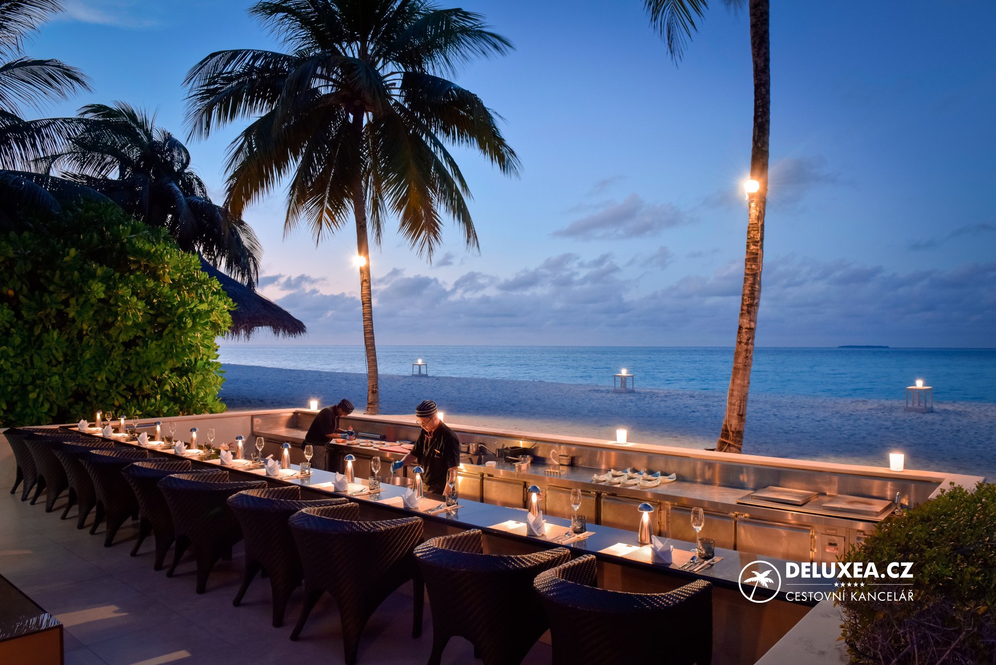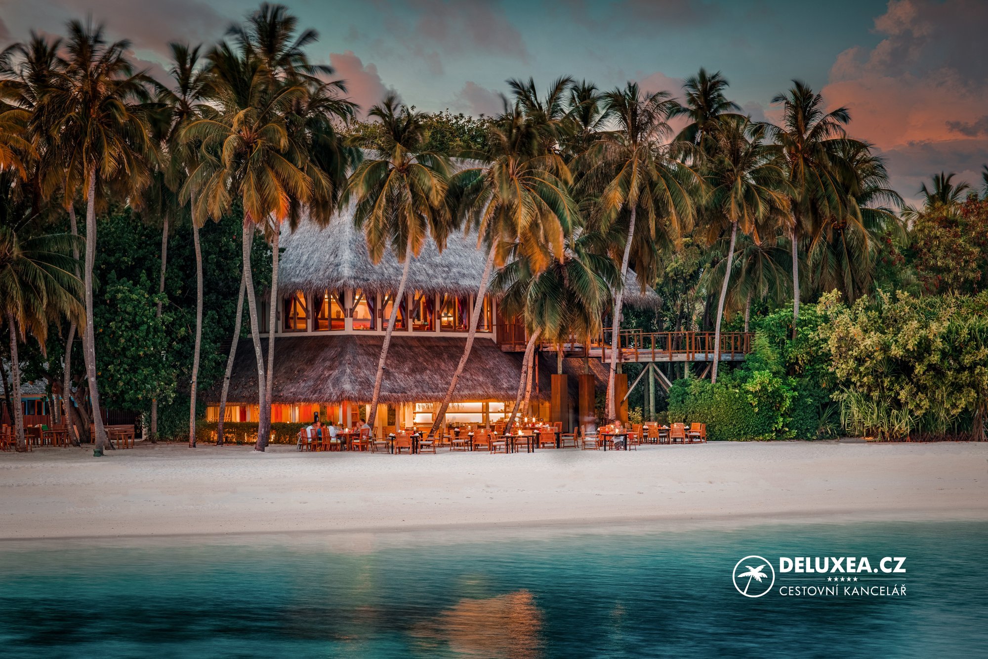 Odlety jsou možné z Prahy nebo Vídně každý den. Létáme luxusními letadly Emirates. Délka Vašeho pobytu může být libovolná. Můžete si vybrat typ pokoje nebo formu stravování. Maledivy jsme opakovaně navštívili a poskytneme Vám osobní rady. Jsou specializací české cestovní kanceláře DELUXEA a.s. založené roku 1995. Hotel, transfer a další služby pro Vás objednáváme přímo na Maledivách. Služby pro Vás nekupujeme u německé cestovní kanceláře a při cestování nebudete členy žádné skupiny. Pokud byste potřebovali jakoukoliv změnu v zájezdu, tak přímo my Vám vše na Maledivách vyřídíme, rychle a operativně. Postaráme se o Vás.